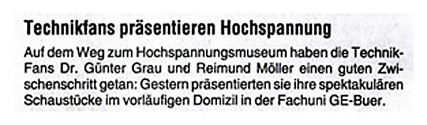Der Zeitungsartikel dazu folgt separat. |