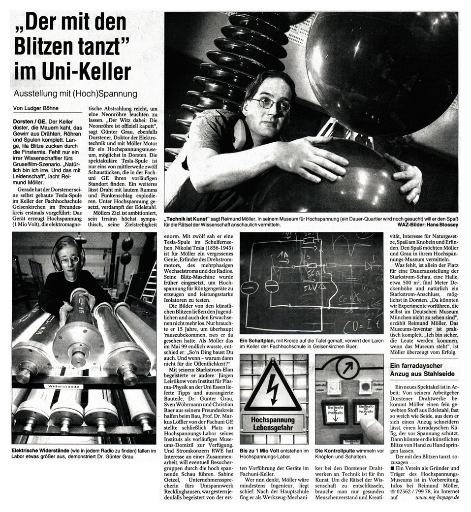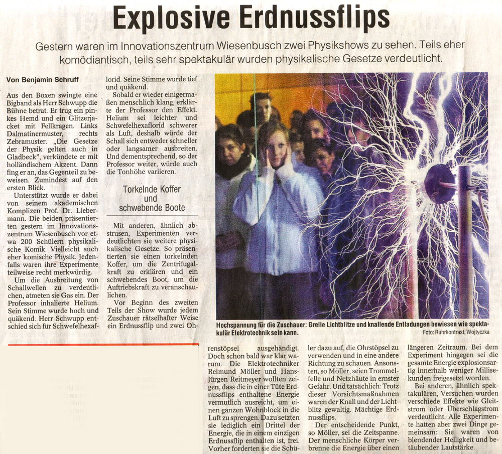 Hier wurden wir von den Universal Studios Networks Deutschland für eine Hochspannungs-Show gebucht. Auf dem Bild ist der Geschäftsführer der Universal Studios, Wolfram Winter, mit unserer Tesla-Spule zu sehen :-)